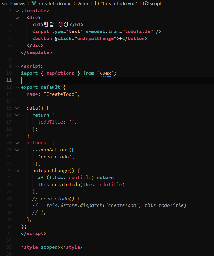 - store/index.js의 state에는 todo를 저장할 빈 배열이 있다.