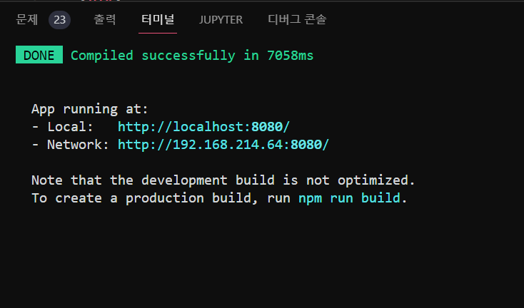 - 장고 프로젝트 폴더와, 뷰 프로젝트 폴더를 각자 vscode로 실행시켜 서버를 실행