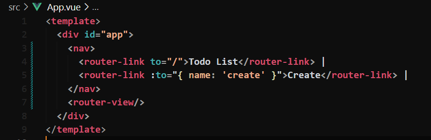 - 데이터는 vuex로 관리 할 것이기 때문에 App에는 링크만 적어줌