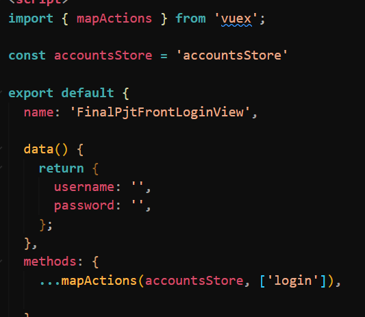 - 만약 vue 컴포넌트에서 이곳으로 접근하고자 하면 다음과 같이 vuex헬퍼 메서드를 사용할 수 있다.
