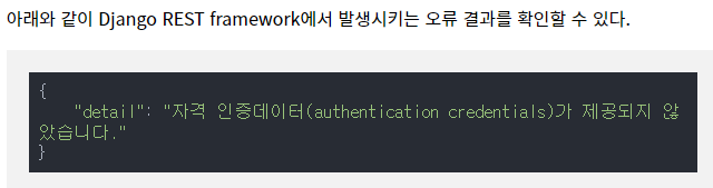 - (중요) settings.py에서 DEFAULT_AUTHENTICATION_CLASSES를 정의
