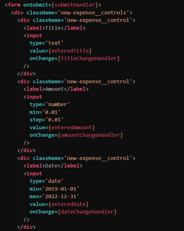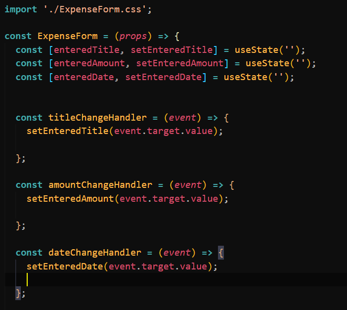 - App -> NewExpense -> ExpenseFrom 으로 부모 -> 자식이 형성되어 있다.