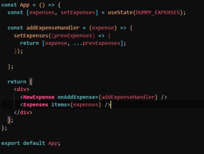 - App은 onAddExpense라는 함수를 props를 통해 내려주었을 것이다.