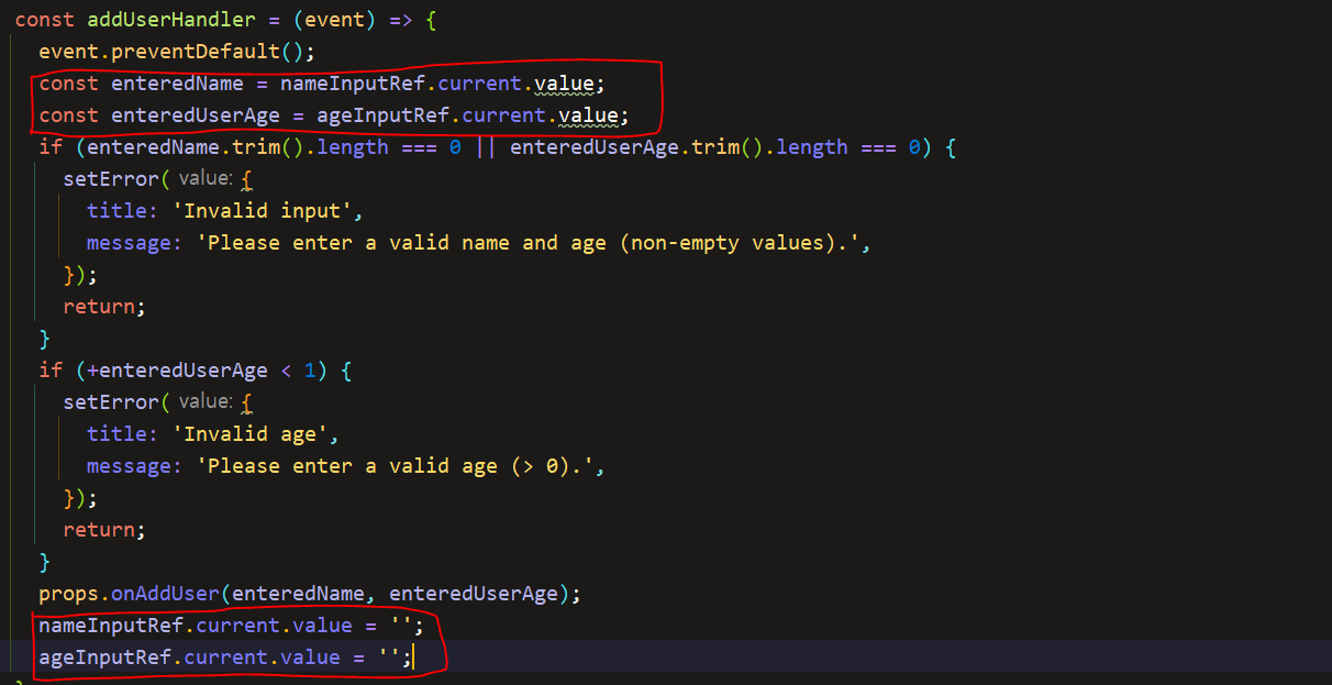 - 접근하기위해서는 위의 빨간 박스처럼 변수명.current.value를 사용해 접근한다.
