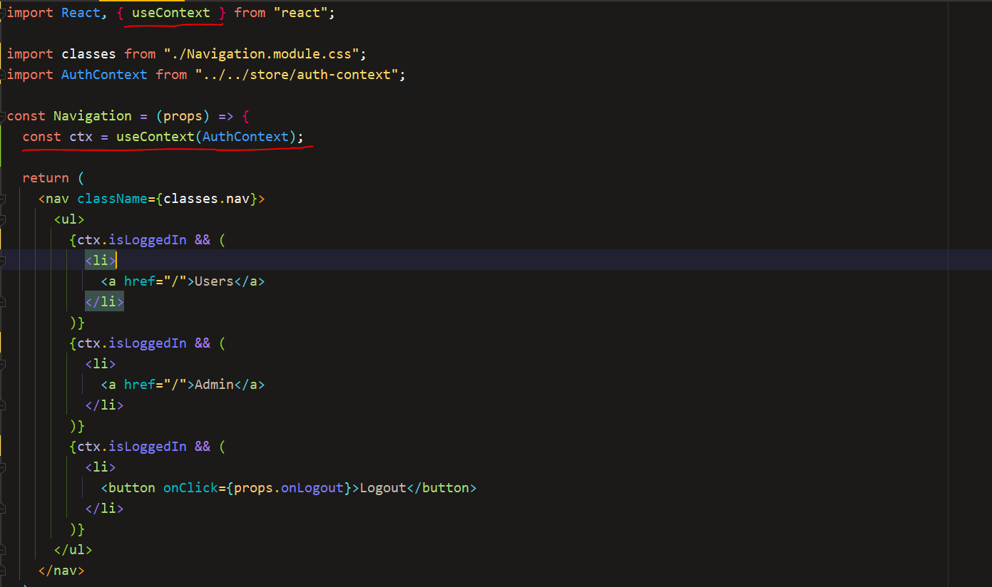 - const ctx = useContext(AuthContext) 와 같이 지정을 해주어 사용하면 더 간결하고 보기 좋다.