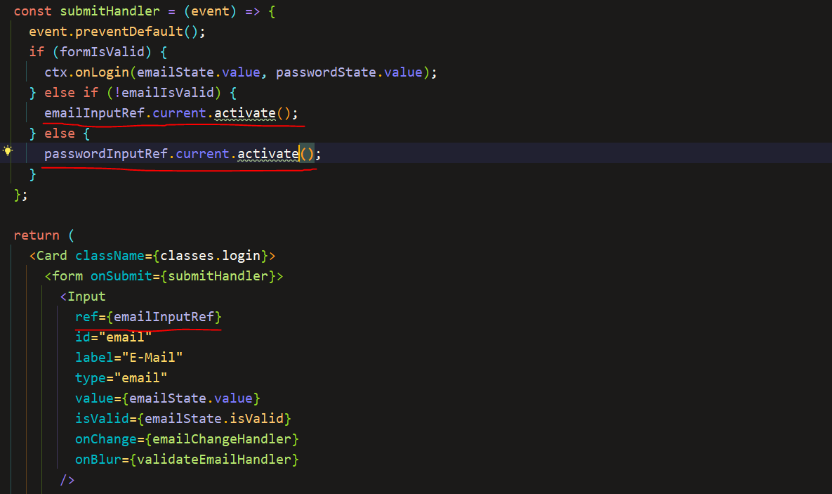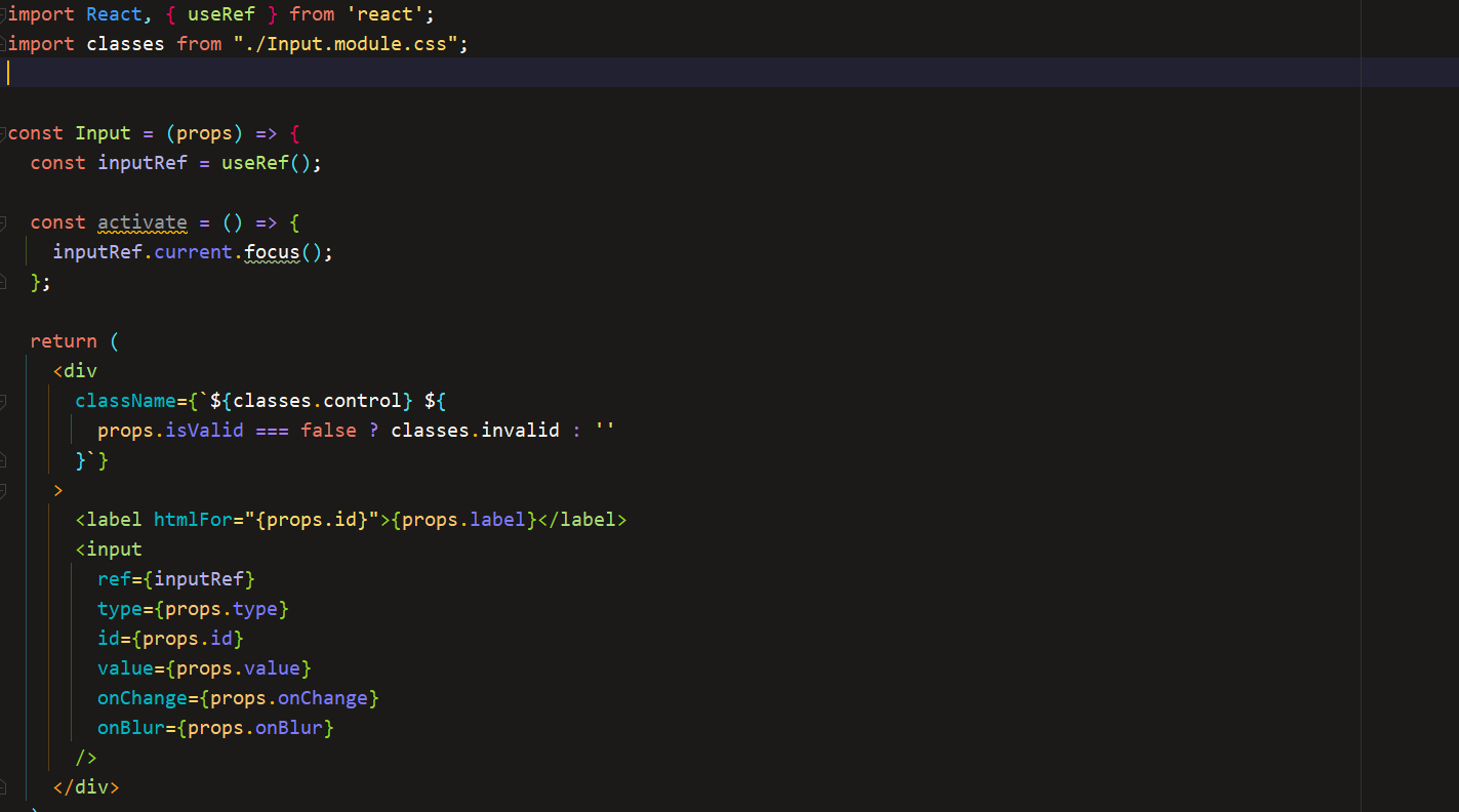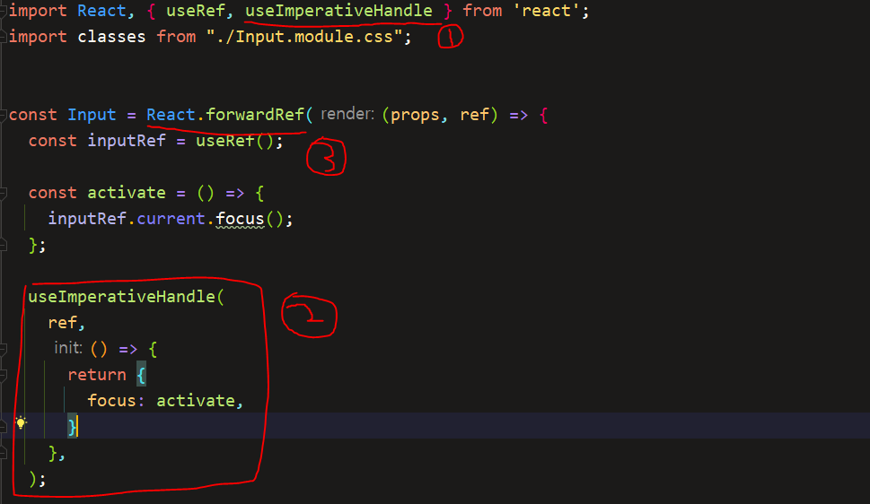 - 여기서 ref를 props로 내려받고 activate함수를 통해 현재 ref에 focus하는 함수를 만들고