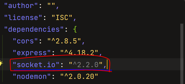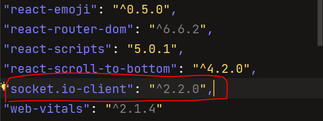 socket버전을 client, server 둘 다 아래와 같이 package.json에서 버전을 내려준다.