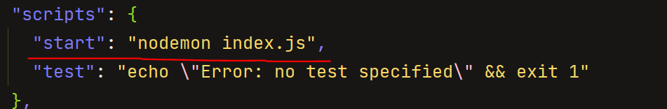 package.json에 start 부분을 추가한다.